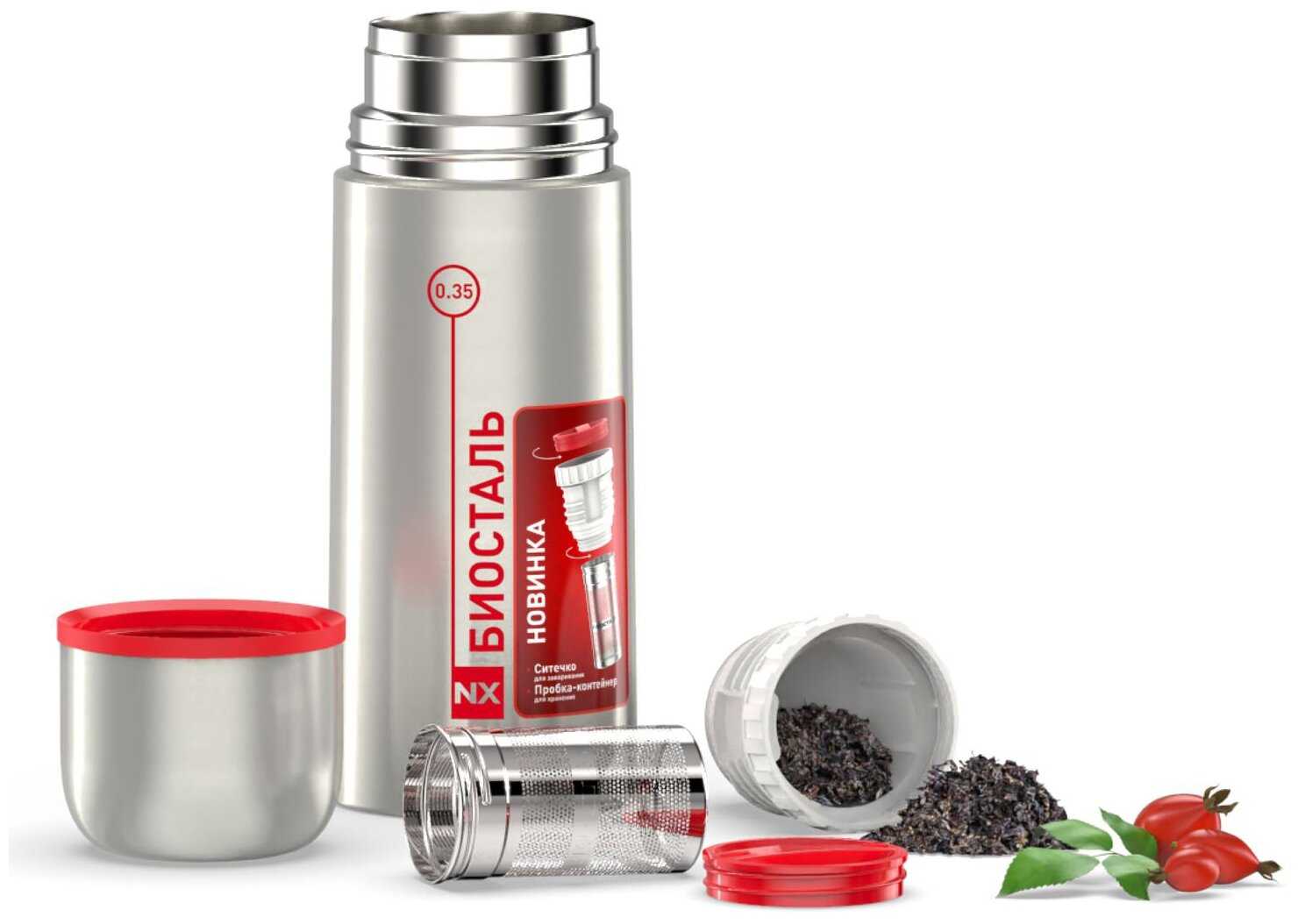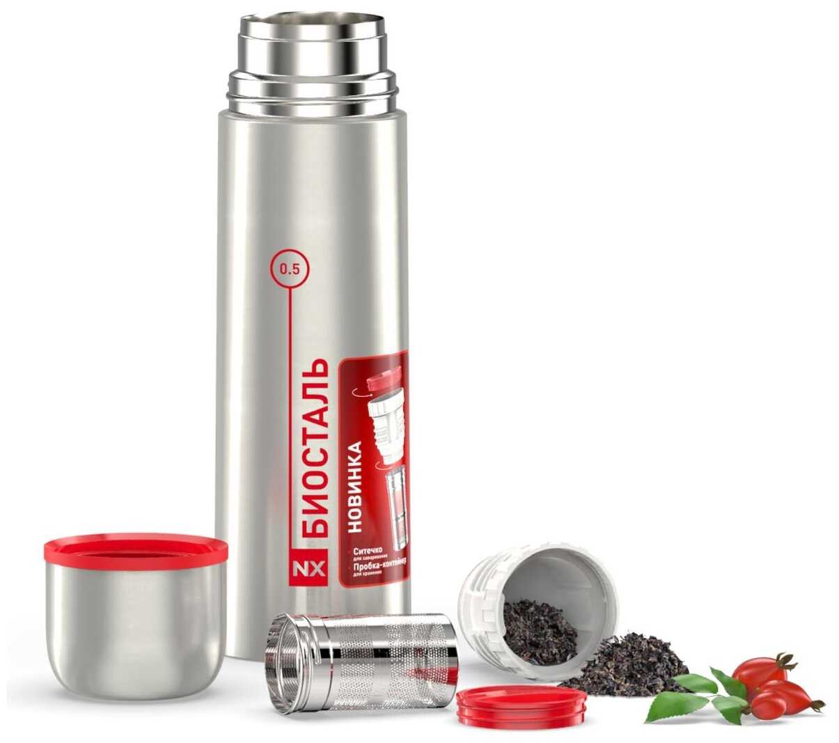 - Встроенная сеточка идеального размера для чая, трав или шиповника, упрощает заваривание в походах или на работе.