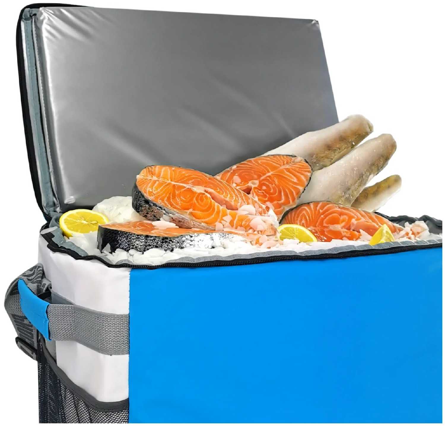 Держит холод на мой взгляд отлично: замороженное мясо удалось везти более суток с двумя аккумуляторами - даже не полностью отошло. Материалы снаружи и внутри легко очищаются. Есть лямки для удержания в сложенном состоянии, при этом аккумуляторы помещаются внутри. К сожалению если тянуть за ремень вбок он может оторваться, мне пришлось подшивать.