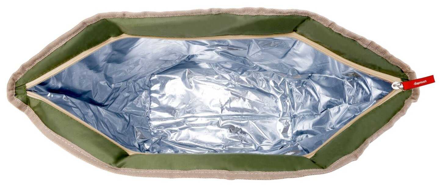 Это уже вторая такая сумка. Первая была синяя. Обе сумки используются и как холодильник для транспортировки продуктов, и как термос для переноски растений зимой. Покупкой очень довольна, иначе бы не купила вторую.