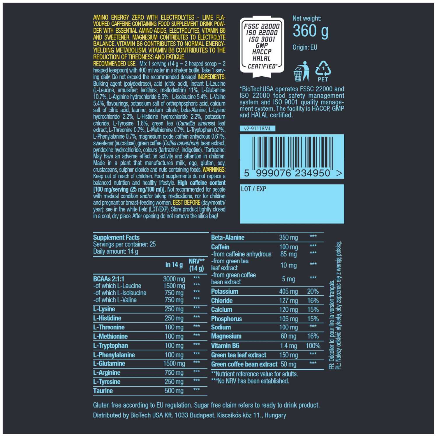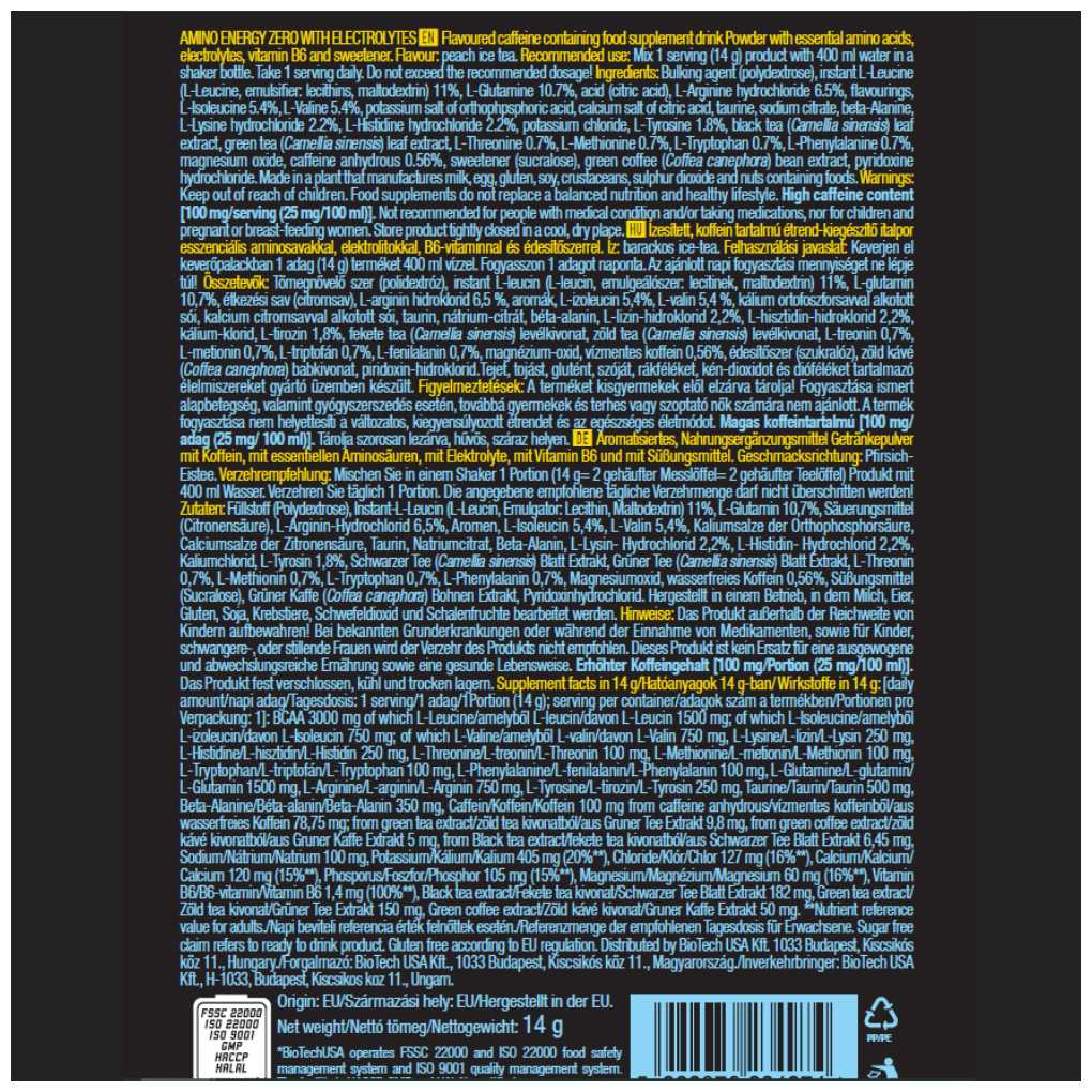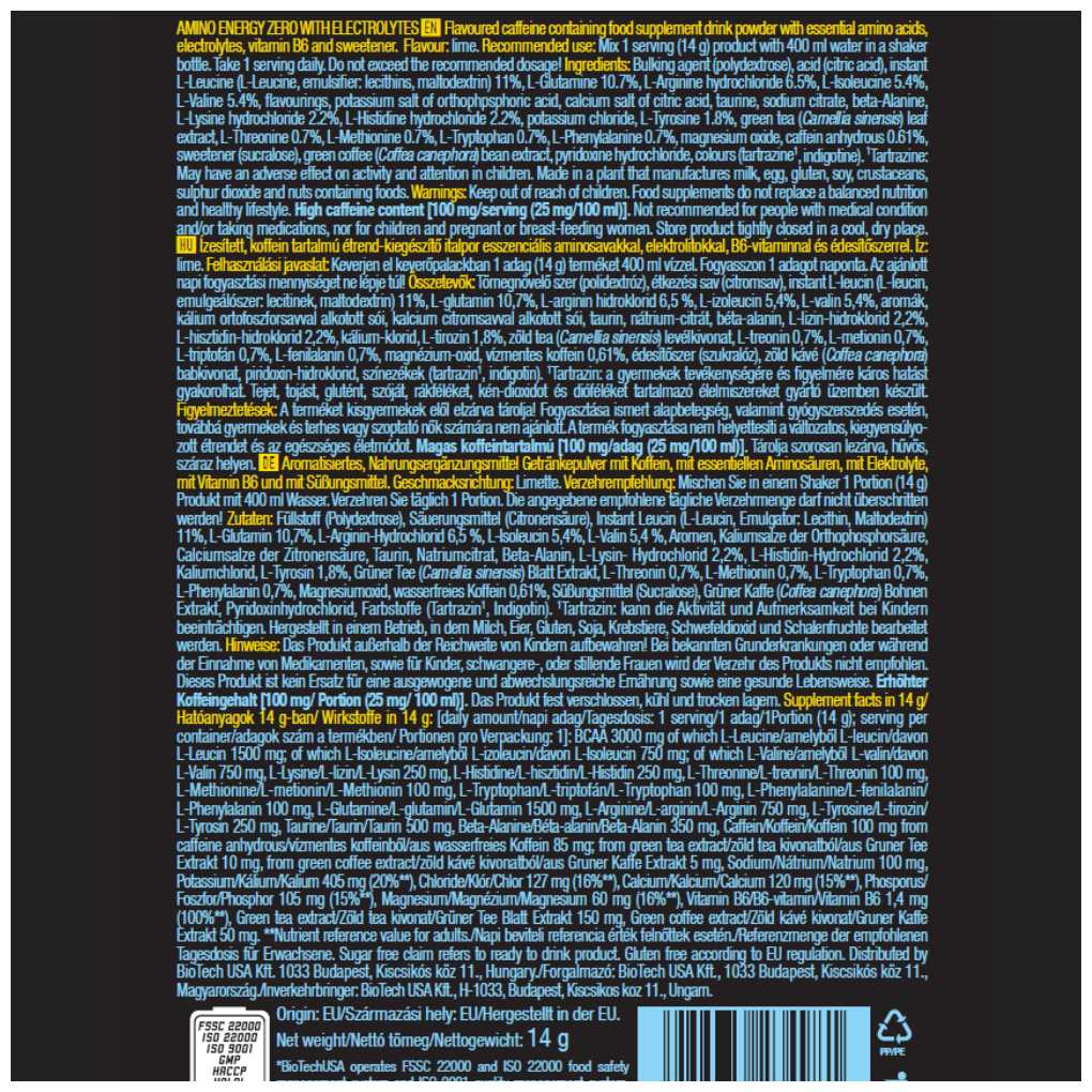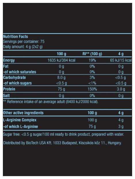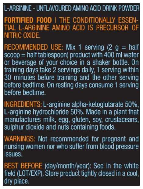 Основной ингредиент : | аланин, аргинин, аргинин альфа-кетоглутарат, аспарагиновая кислота, валин, гистидин, глицин, глутамин, изолейцин, лейцин, лизин, метионин, орнитин, пролин, серин, тианин, тирозин, треонин, триптофан, фенилаланин, цистеин, цитруллин |