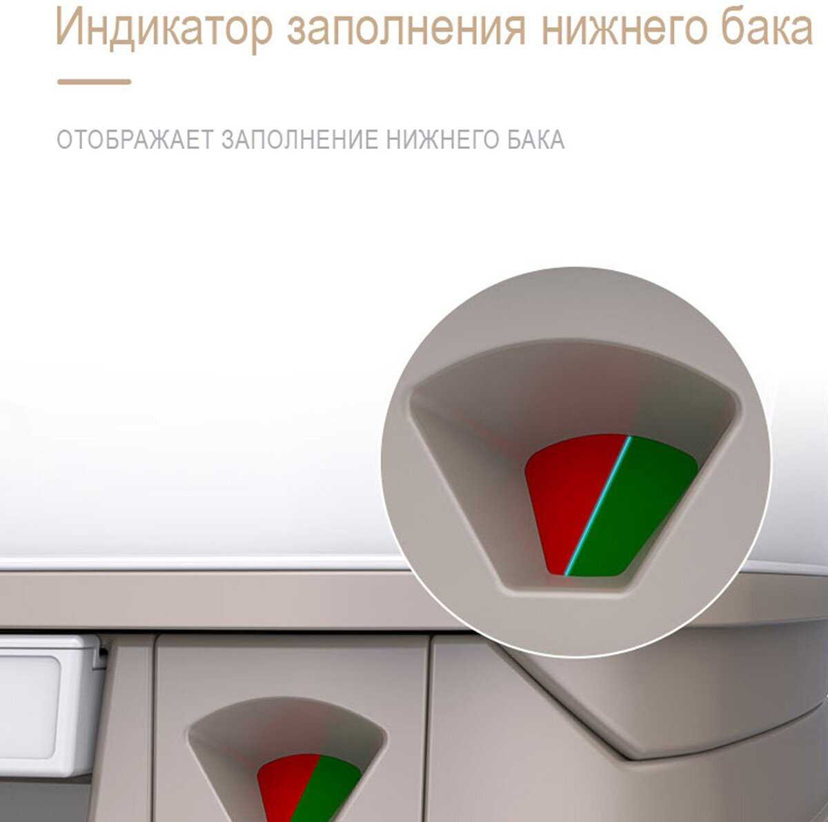 - индикатор заполнения: нижний бак