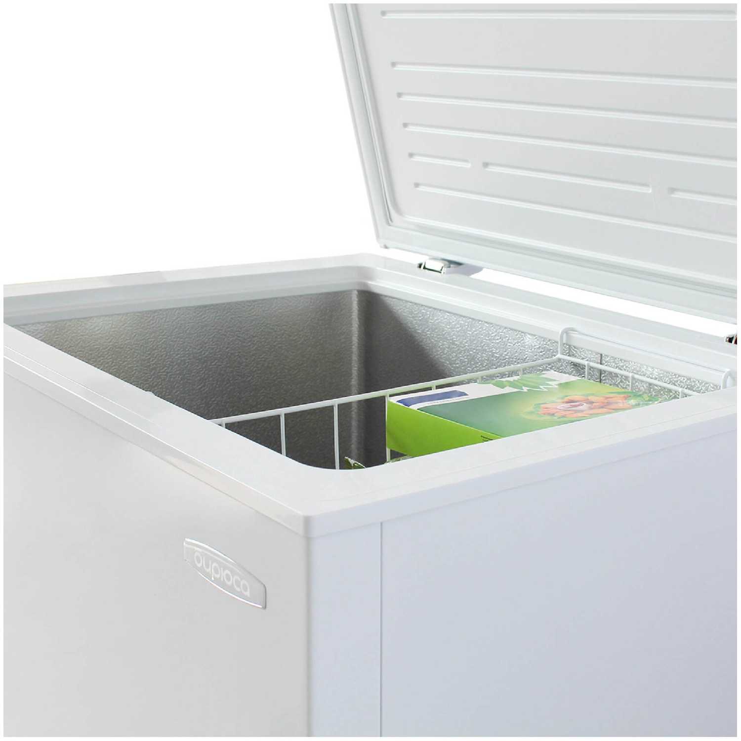 При полезном объеме 142-170 л ларь вмещает до 50 кг мяса или 100 качанов кукурузы. Однако внутреннее пространство ограничено мягкими фольгированными стенками, которые легко повредить крупными замороженными блоками. Для рационального использования глубины (70 см) многие покупатели докупают контейнеры или сетчатые корзины. -