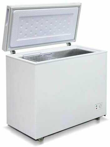 - Объём 240 л позволяет хранить много продуктов, включая крупные вещи вроде рыбы, даже если ларь узкий и длинный (81,5 × 105,5 × 54,5 см).