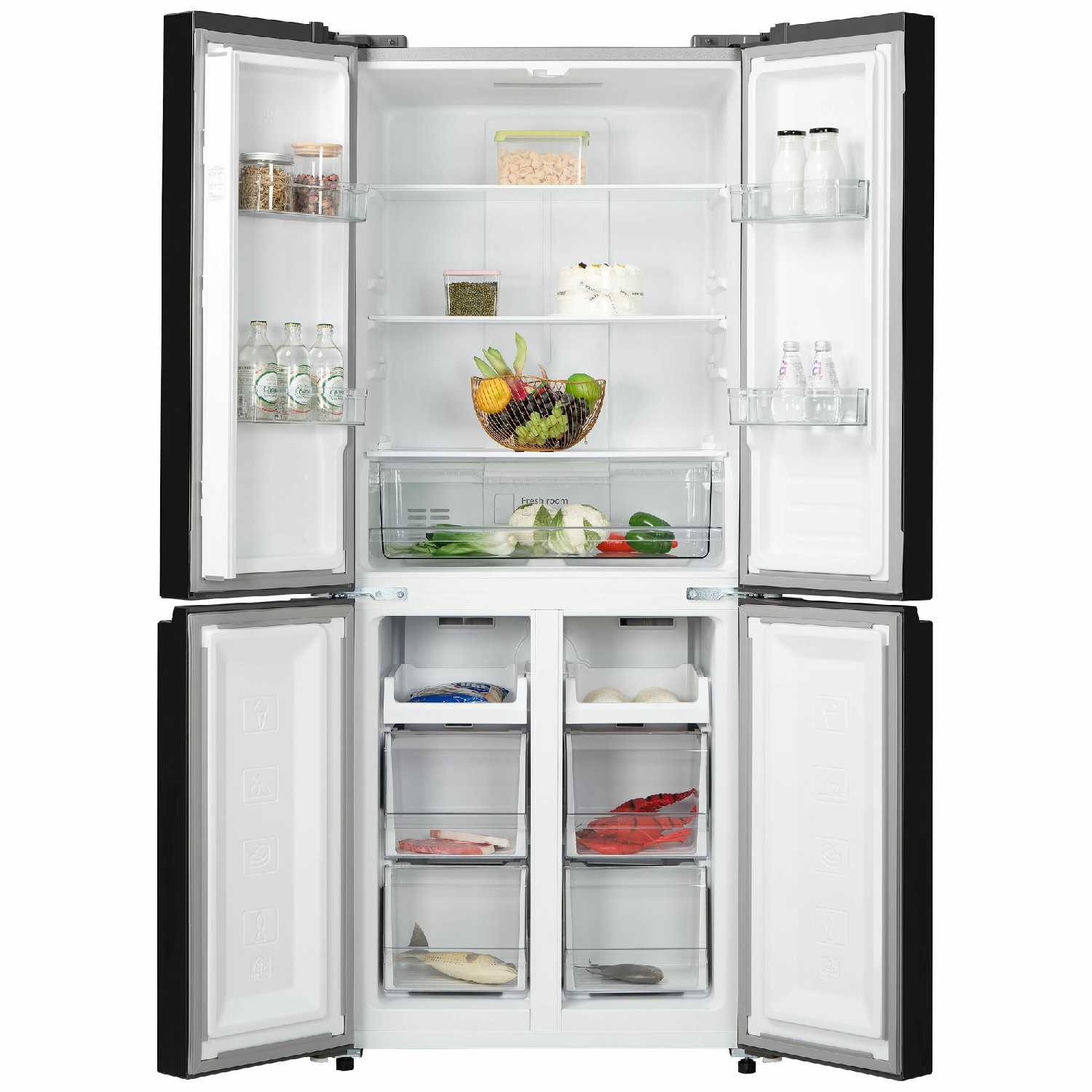 - Четыре двери позволяют открывать только нужный отсек, экономя холод, что удобно в повседневности.