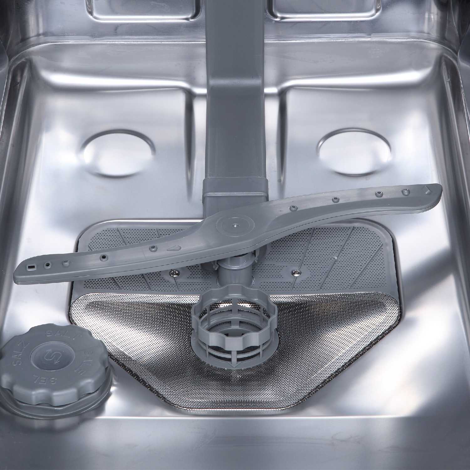 - Вмещает много посуды за счет отдельного лотка для приборов и трех разбрызгивателей.