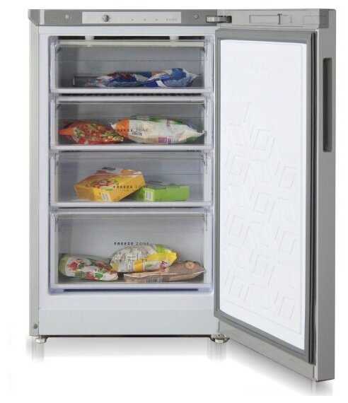 Морозилка бюджетная, простая, но сделана качественно. Уплотнитель на дверце прочный, плотно прилегает к стенкам. Вместительность достаточная, морозит хорошо, инея внутри нет. На режиме суперзаморозки быстро замораживаеют даже большие куски мяса.