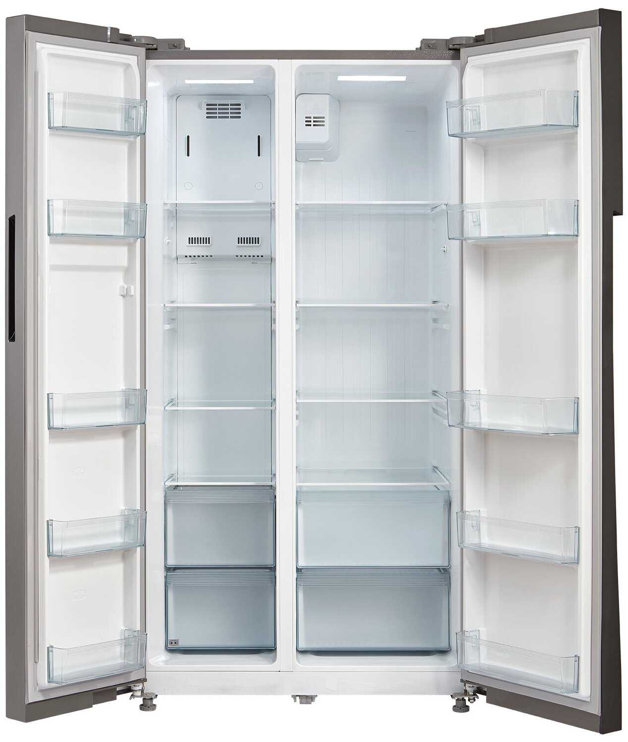 - + Наилучшее соотношение цена/качество, не только всех холодильников side-by-side, но вообще в целом в категории. Наличие ПЯТИ полок на каждой двери.