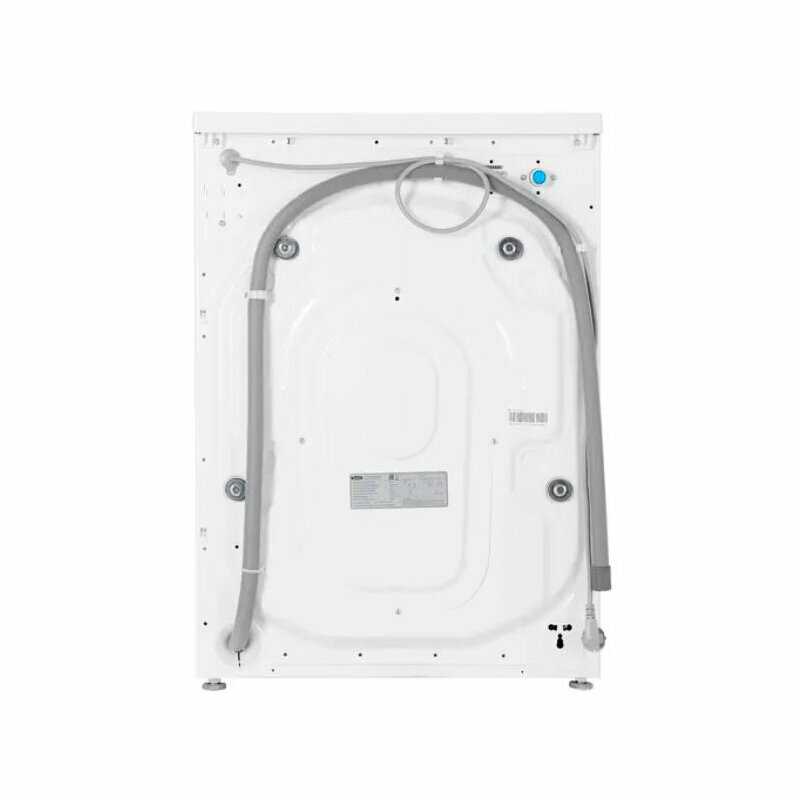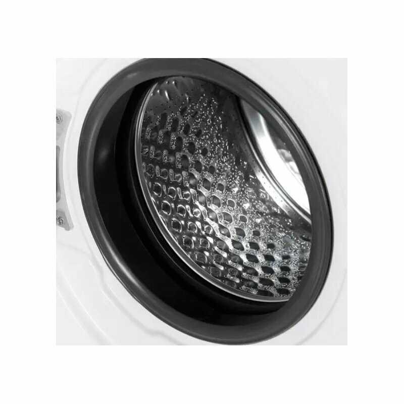 Барабан глубиной 61 см вмещает крупные предметы, которые не помещались в предыдущие модели, — например, пуховые одеяла или три комплекта постельного белья одновременно. Это сокращает частоту стирок, но люк имеет относительно небольшое загрузочное окно (меньше самой дверцы), что может затруднять размещение габаритных вещей. При полной загрузке отжим требует внимания к выбору оборотов для оптимальной работы сушилки. -