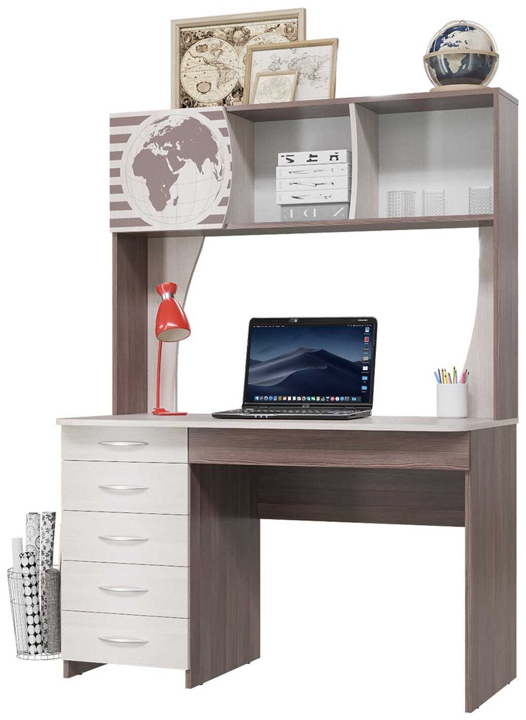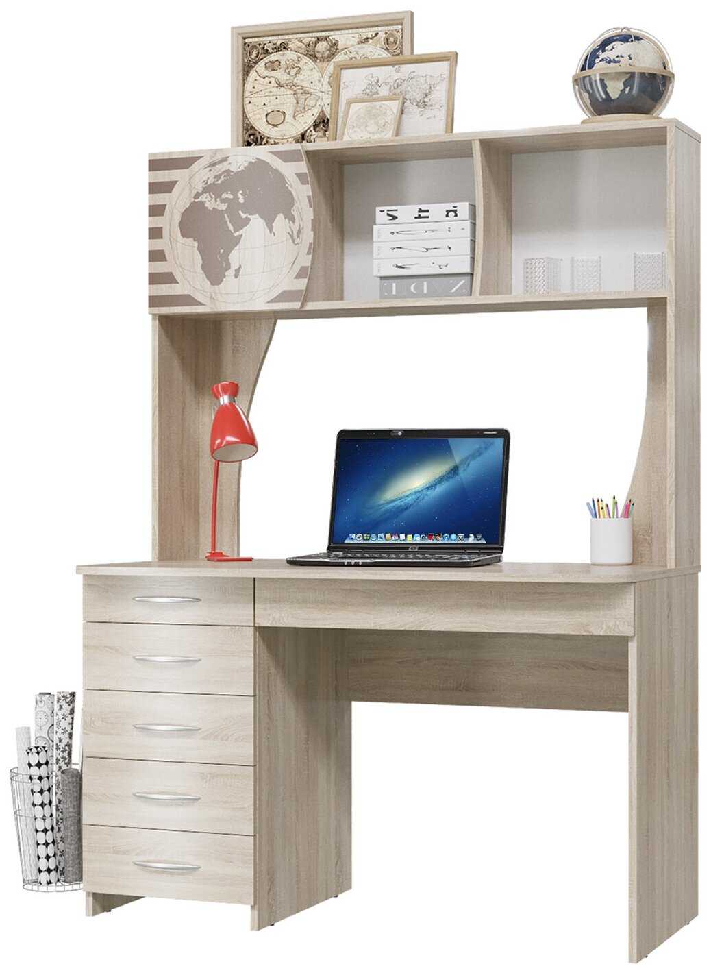 Впервые встретили настолько продуманный письменный стол! Много ящиков, надстройка с дверкой и полками. Большая рабочая поверхность.