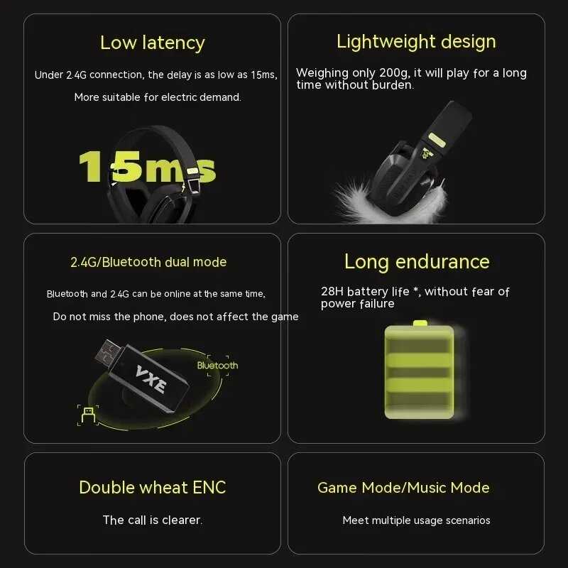 Наушники поддерживают проводное подключение и беспроводное соединение через радиоканал с использованием компактного USB-приемника. Некоторые пользователи отмечают сложности с подключением к телефону, однако наличие модуля Type-C упрощает этот процесс для современных смартфонов. При включении устройство может озвучивать уведомления на китайском языке. -