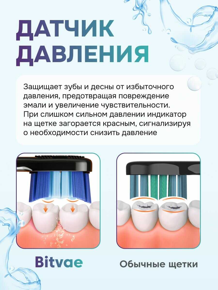 | Дополнительные функции : | датчик нажима, таймер времени чистки, таймер смены области чистки |