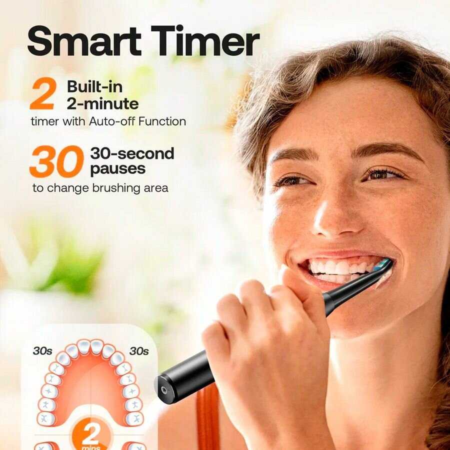 Щетка оснащена таймером с вибрацией каждые 30 секунд для смены зоны рта и автоотключением через 2 минуты. Это помогает чистить зубы равномерно, как отмечают родители для детей. Переключение режимов и отключение происходит длинным нажатием или ожиданием автоотключения. Функция удобна, но требует привыкания. -