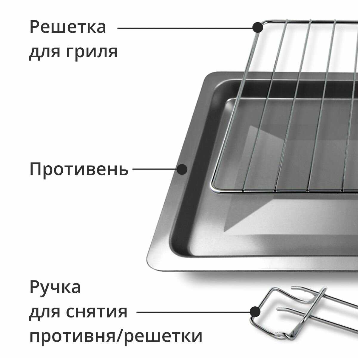 | Режимы работы : | верхний гриль, верхний нагрев, верхний+нижний нагрев, нижний гриль, нижний нагрев |