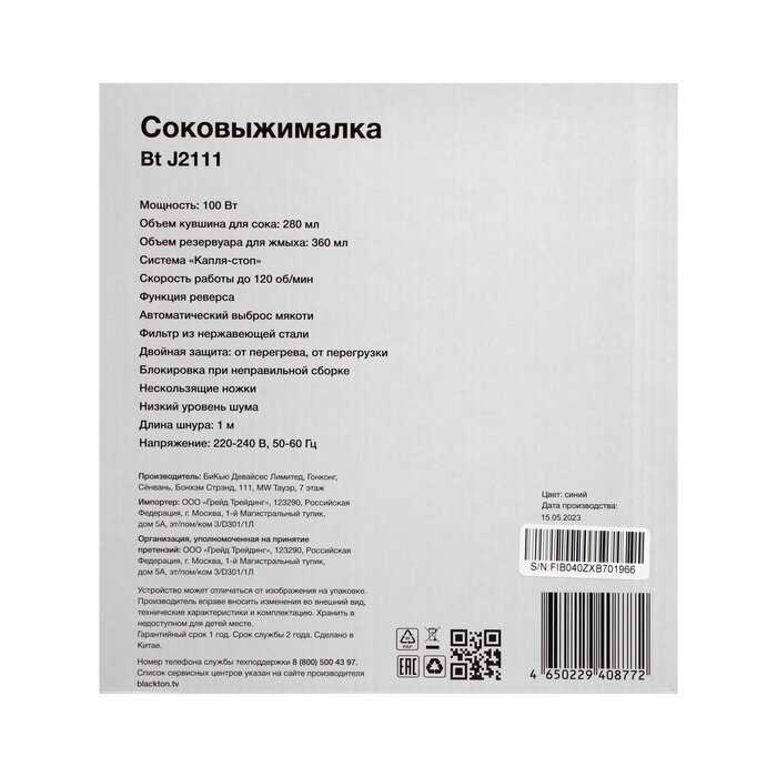 Дополнительная информация : | Защита от случайного включения, Защита от перегрузки / перегрева, Контейнер для отходов, Контейнер для сока |