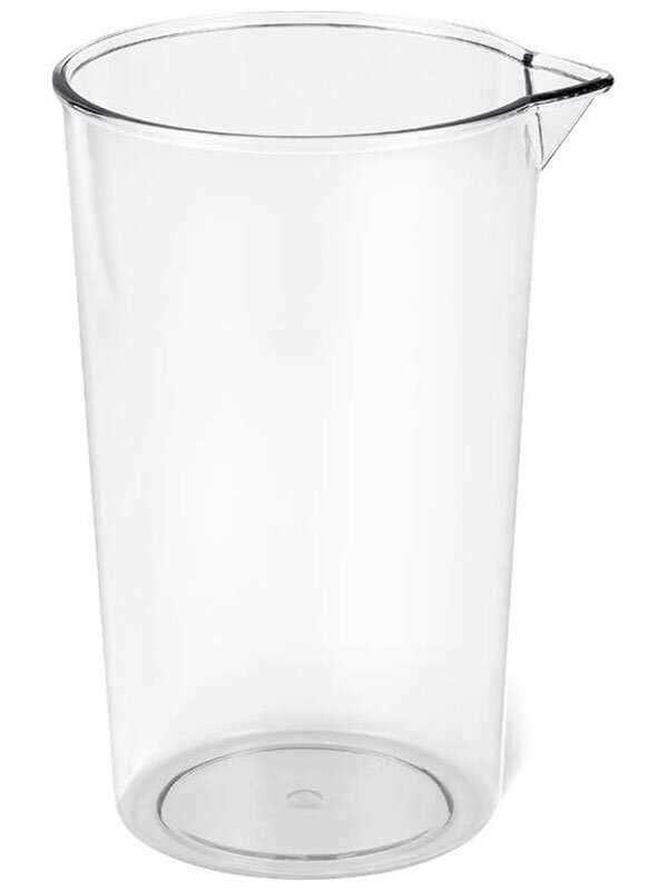 В комплектацию входит мерный стакан объемом 700 мл с удобной разметкой, выполненный из прочного прозрачного пластика. Его размер оптимален для приготовления порций на 2-3 человек, особенно при изготовлении смузи, коктейлей и соусов. Стакан устойчив благодаря широкому основанию и хорошо моется, хотя некоторые пользователи отмечают, что при взбивании венчиком в стакане может создаваться избыточное пенообразование из-за ограниченного пространства. -
