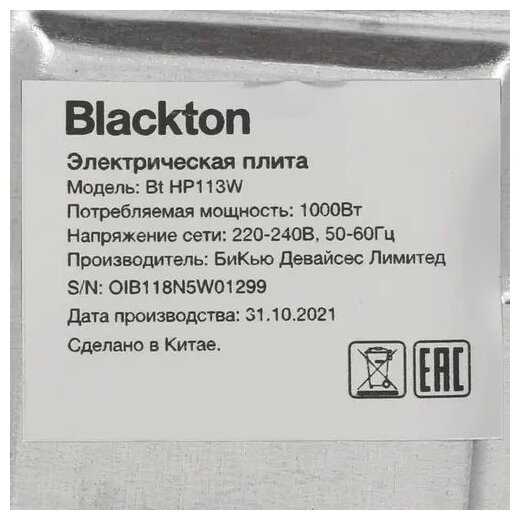 | Дополнительная информация : | диаметр конфорки 155 мм |