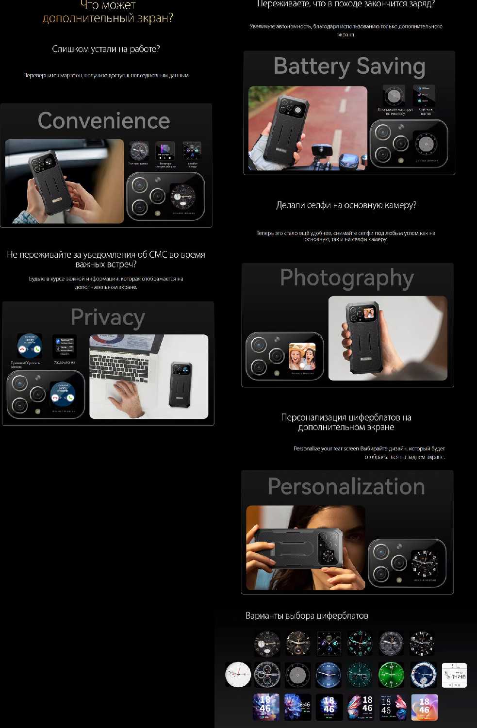 - + батарея, экран, второй экран очень удобно, пыль влагозащита
