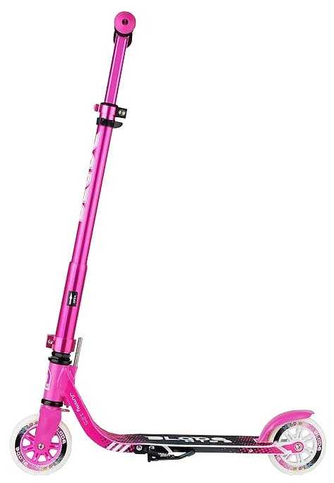 - + Хороший самокат, дочке покупали розовый, крестнику недавно подарили зеленый. Едет хорошо, можно регулировать высоту, колеса светятся. Складной, но это и плюс и минус. Рычажок у основания...