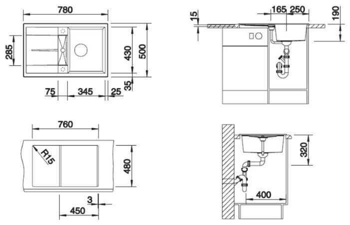 11 отзывов пользователей o Blanco Metra 45S, 50х78см, искусственный гранит