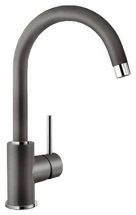Выбирала жена по цвету и красивой форме. Я одобрил, так как производитель надежный и материал тоже. В смесителе есть керамический картридж, гранитное покрытие, один рычаг включения с вертикальным поворотом и аэратор, экономящий воду. Поворотный излив дает возможность направить воду в любой угол раковины и даже за ее пределы, что облегчает процесс мытья посуды и набора воды в емкости.