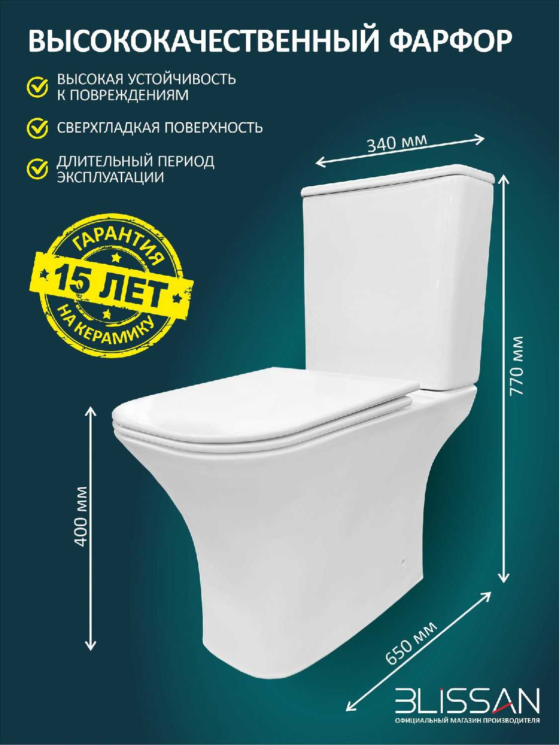 Отзывы о Унитаз напольный с бачком безободковый BLISSAN Prestige Rimless