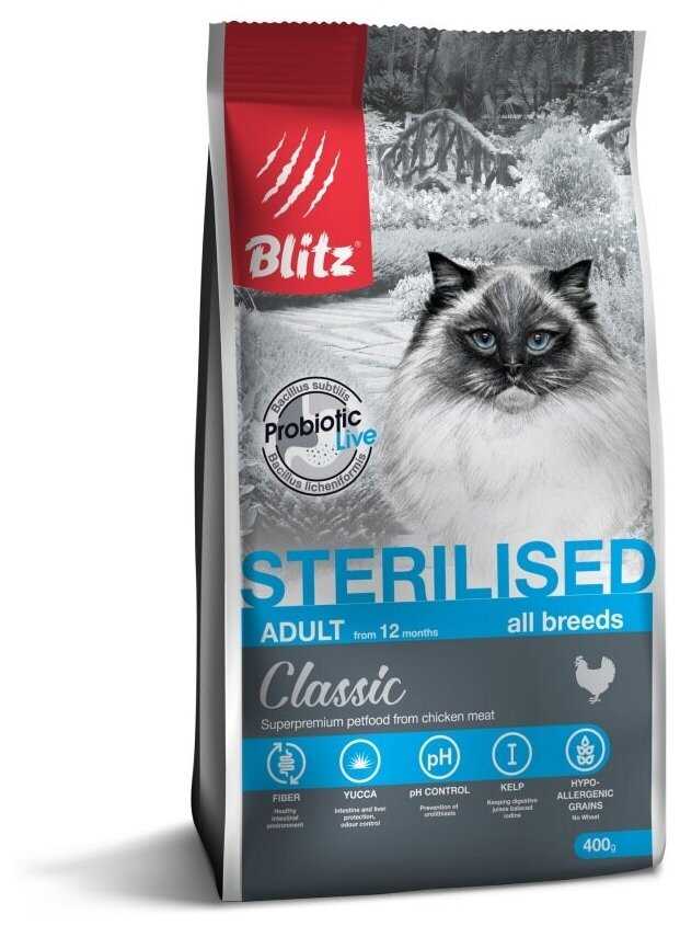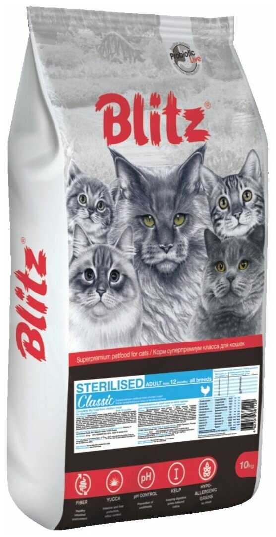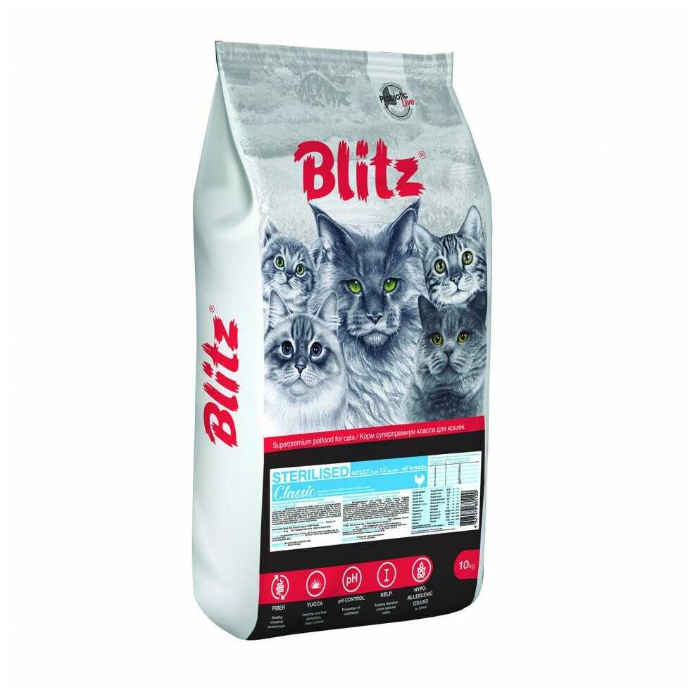 Пищеварение и переносимость: Корм Blitz демонстрирует высокую эффективность для кошек с чувствительным пищеварением и пищевыми аллергиями. Многочисленные владельцы подтверждают, что после перехода на этот корм у питомцев полностью исчезли проблемы с ЖКТ, аллергические реакции и нормализовался стул ("сформирован как положено"). Особенно выделяются случаи, когда животные, страдавшие от аллергии на другие корма, хорошо перенесли Blitz. Отмечается уменьшение линьки и улучшение качества шерсти — она становится более упругой, блестящей и меньше выпадает. Некоторые пользователи связывают это с отсутствием пшеницы и качественным составом.