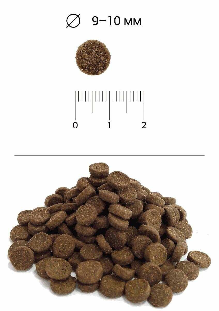 - Плоские гранулы небольшого размера (3–5 мм в диаметре) облегчают разгрызание, особенно для кошек с чувствительными зубами или мелких пород.
