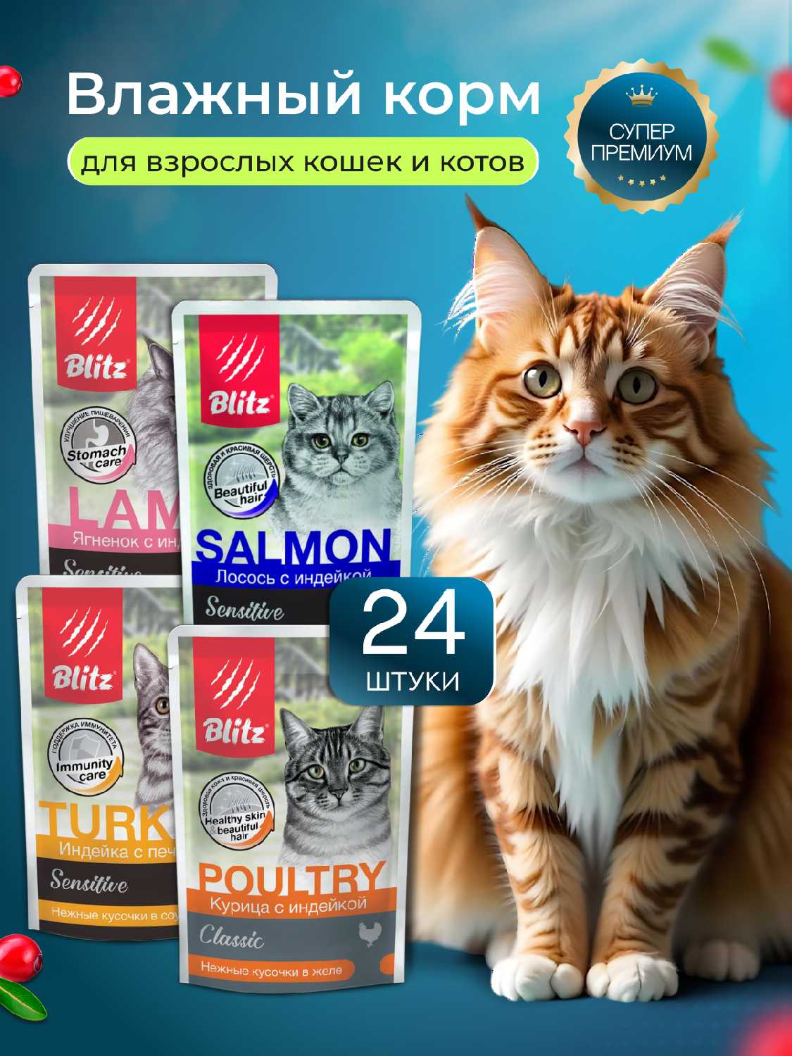 Отзывы о Влажный корм для кошек Blitz Sensitive набор (4 вкуса)