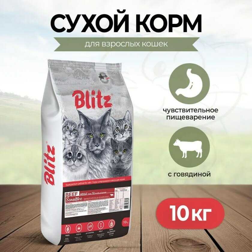 По сравнению с Pro Plan или Brit Premium, Blitz часто выигрывает в составе (больше мяса, меньше злаков) и цене за килограмм, особенно при покупке больших упаковок (10 кг). Однако он уступает холистикам (Orijen, Grandorf) в отсутствии курицы и может проигрывать в стабильности качества некоторым премиум-брендам. Линейка вкусов ограничена, и владельцы просят расширить ассортимент, особенно в сегменте холистик без курицы.