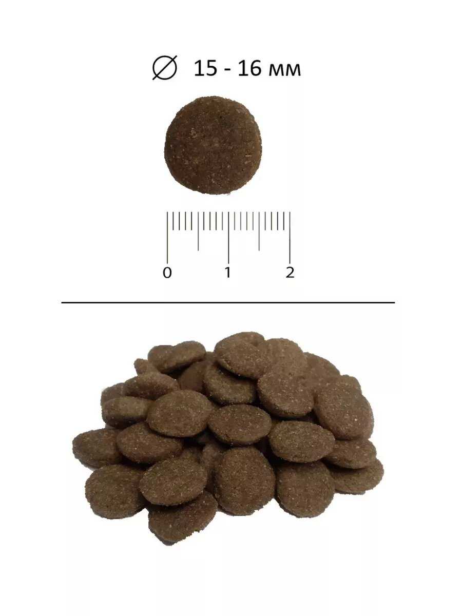 - Диаметр гранул ~1 см неудобен для крупных пород (доберманы, овчарки), которые заглатывают их без разжёвывания.
