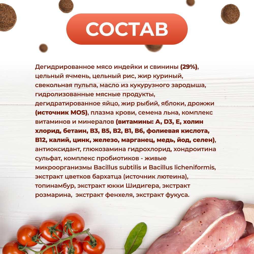 - Содержит легкоусвояемые белки (индейка, говядина) и исключает распространённые аллергены, что обеспечивает стабильный стул.