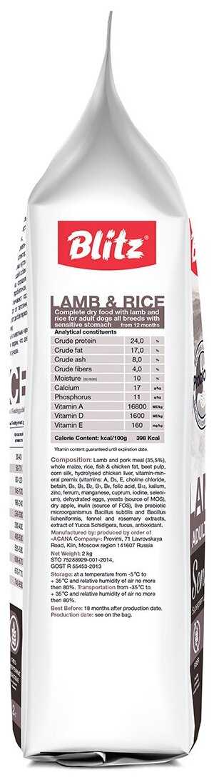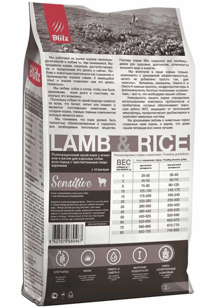 Обзор Blitz Sensitive (ягненок, с рисом) - мнение пользователей*: