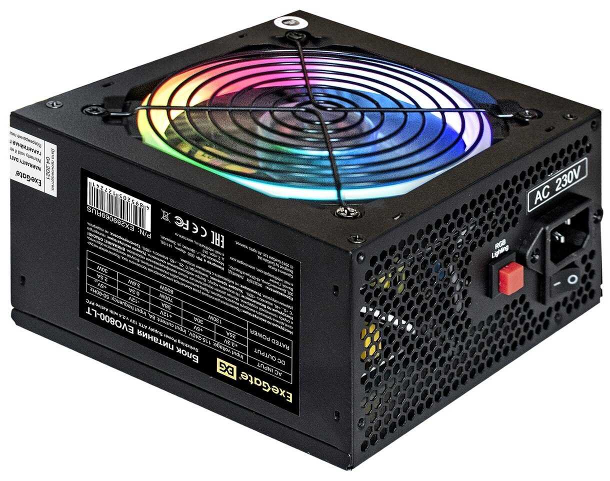ExeGate EVO800-LT 800W + кабель 220V с защитой от выдергивания