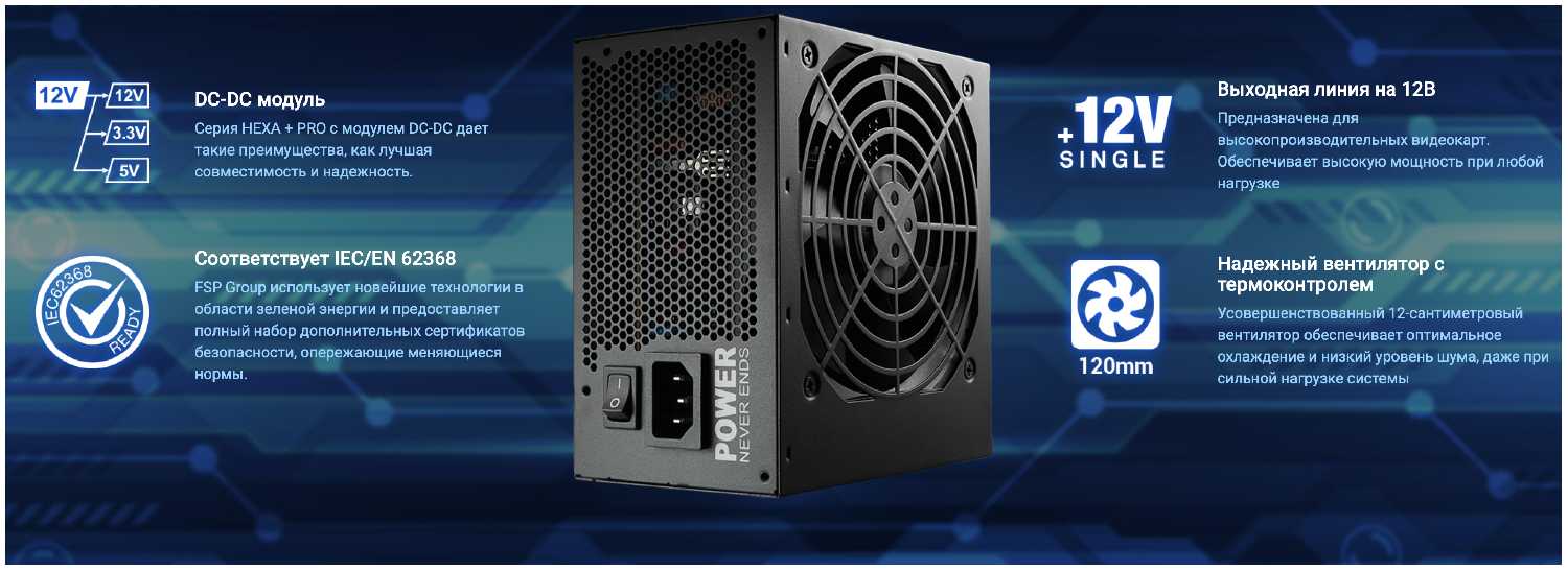 7.1/10 балловFSP Group Блок питания FSP HEXA+ PRO 400W [PPA4006700] Мощность 400Вт Высокая энергоэффективность Для геймеров