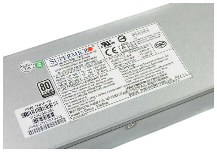 Характеристики:- блок питания 1U мощностью 1800 Вт