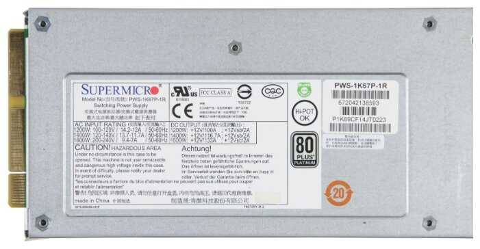 Характеристики:- блок питания 1U мощностью 1400 Вт