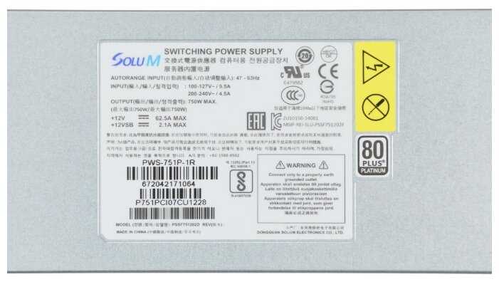 Характеристики:- блок питания 1U мощностью 750 Вт