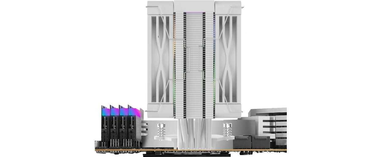 - + Красивый мощный вентилятор. Рассеивает до 230 Вт. Покупал из-за высоты 154 мм, т.к. в корпус большой не помещается. Установлен на ryzen 7600. Охлаждение даже не напрягается. Хотел водянку на процессор ставить, но этим кулером решил свои проблемы, причем малой монетой.