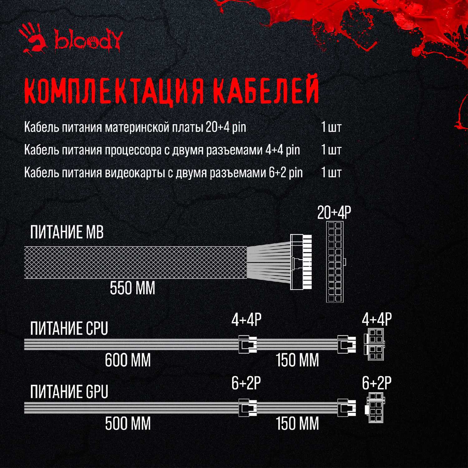 Белый цвет корпуса, кабелей и коннекторов – ключевой фактор выбора для систем с тематическим дизайном. Решение актуально для сегмента, где аналогичные предложения редки. Логотип Bloody выполнен не съёмной наклейкой, а интегральным элементом корпуса, что может нарушать стилистику. Оптимальные сценарии использования: ПК с GPU до RTX 4070/RX 7700 XT (для 650W) или высокопроизводительные сборки с запасом для RTX 4080 (750W Gold). Не рекомендуется для систем с нагрузкой выше 700 Вт из-за ограничений по пиковой мощности.