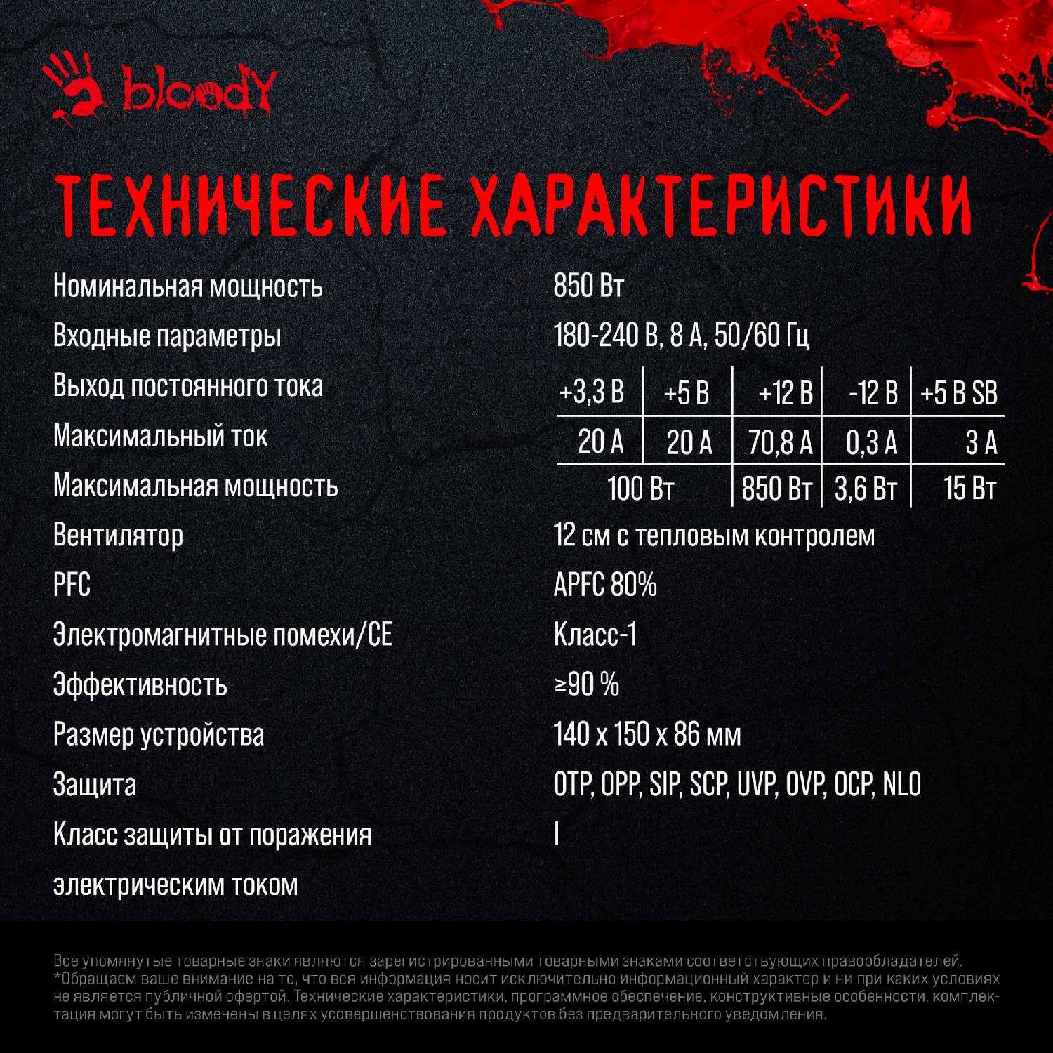 Характеристи Bloody Блок питания (BD-PS850G)