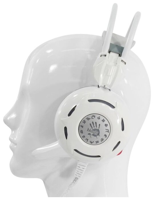Эти наушники также могут похвастаться длительным временем автономной работы. На самих наушниках присутствует эмблема фирмы Bloody, что добавляет им привлекательности.