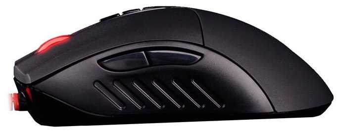 - + Удобная мышка под большую руку. Для средней тоже вполне подходит (пользуется дочь и жена). Шнур в нитевой оплетке, мягкий, достаточно длинный. Использую с обыкновенным пластиковым ковриком. Металлические накладки (ножки) практически бесшумно скользят. Через программное обеспечение можно выключить или изменить яркость подсветки.
