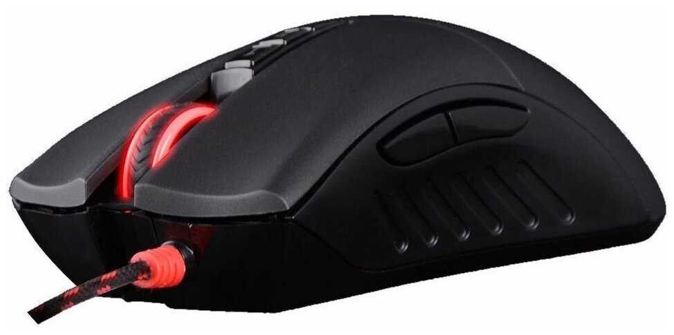 - + Удобный хват; живучие ЛКМ и ПКМ; настройка софта - один раз настроил и забыл, все настройки хранятся в памяти мышки - это очень удобно; плетенный провод; металлические неубиваемые ножки; адекватная цена=качество; обычный шершавый пластик без покрытия - это важно, т.к. на предыдущей Bloody A91 покрытие начало слезать и пользоваться мышью банально неприятно; не срывает сенсор, нормальная точность для работы в граф. редакторах и в шутерах.