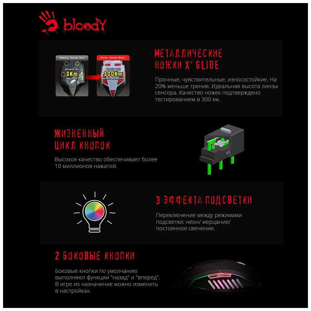 - Невозможность тонкой настройки RGB, создания профилей DPI или макросов через Bloody Engine.