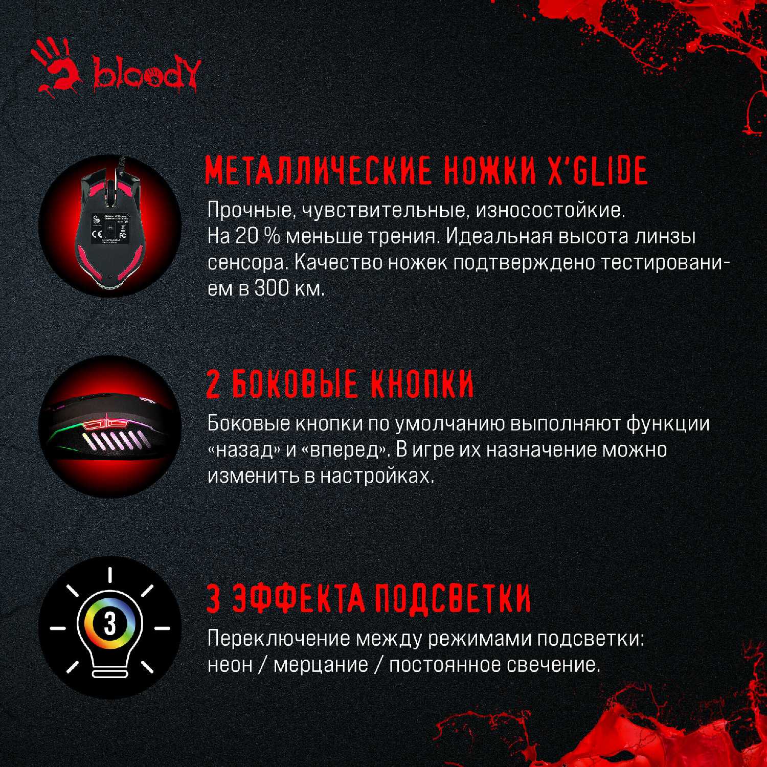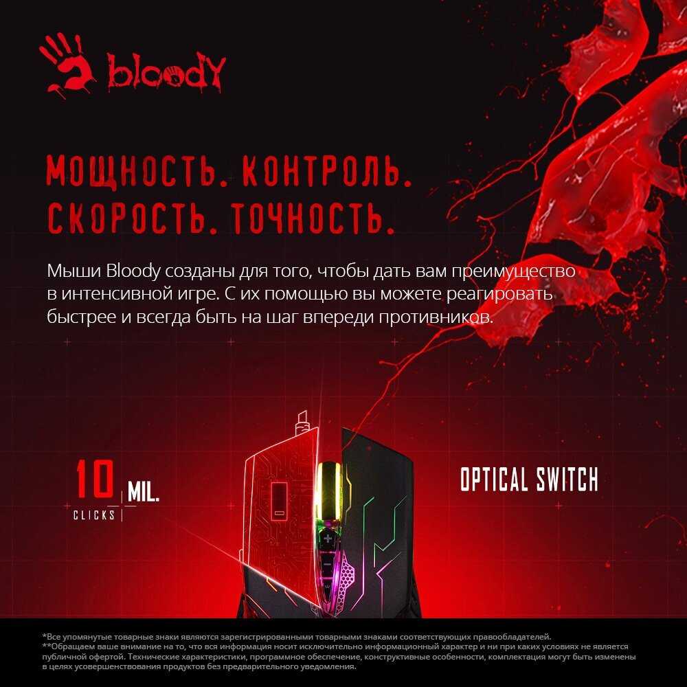 Купил ваш хваленный блади)) отличная крыса за свои деньги, лучше ещё поискать надо. качественный пластик, удобная, в руках не скользит, подсветка в глаза не бросается, можно регулировать её. Радуют металлические ножки, теперь раньше коврик под ней сотрется, чем вы мышку ушатаете)) кнопки тихие, колёсико прокручивается, вообще не слышно, что радует)) ничего нигде не люфтит не скрипит. В целом рекомендую! На несколько лет мышки хватит