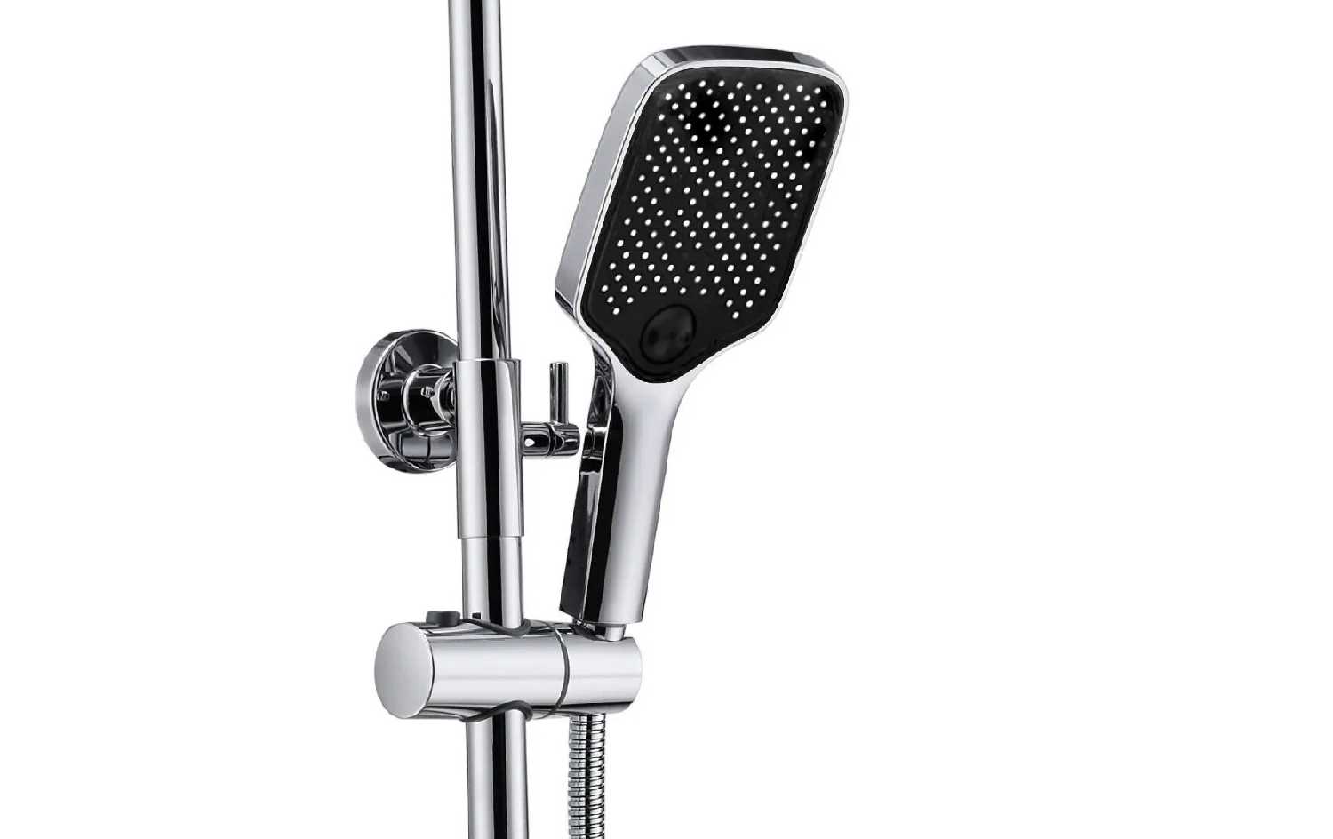 | Комплектация : | верхний душ, держатель лейки, душевая стойка, лейка, ручной душ, смеситель, шланг |