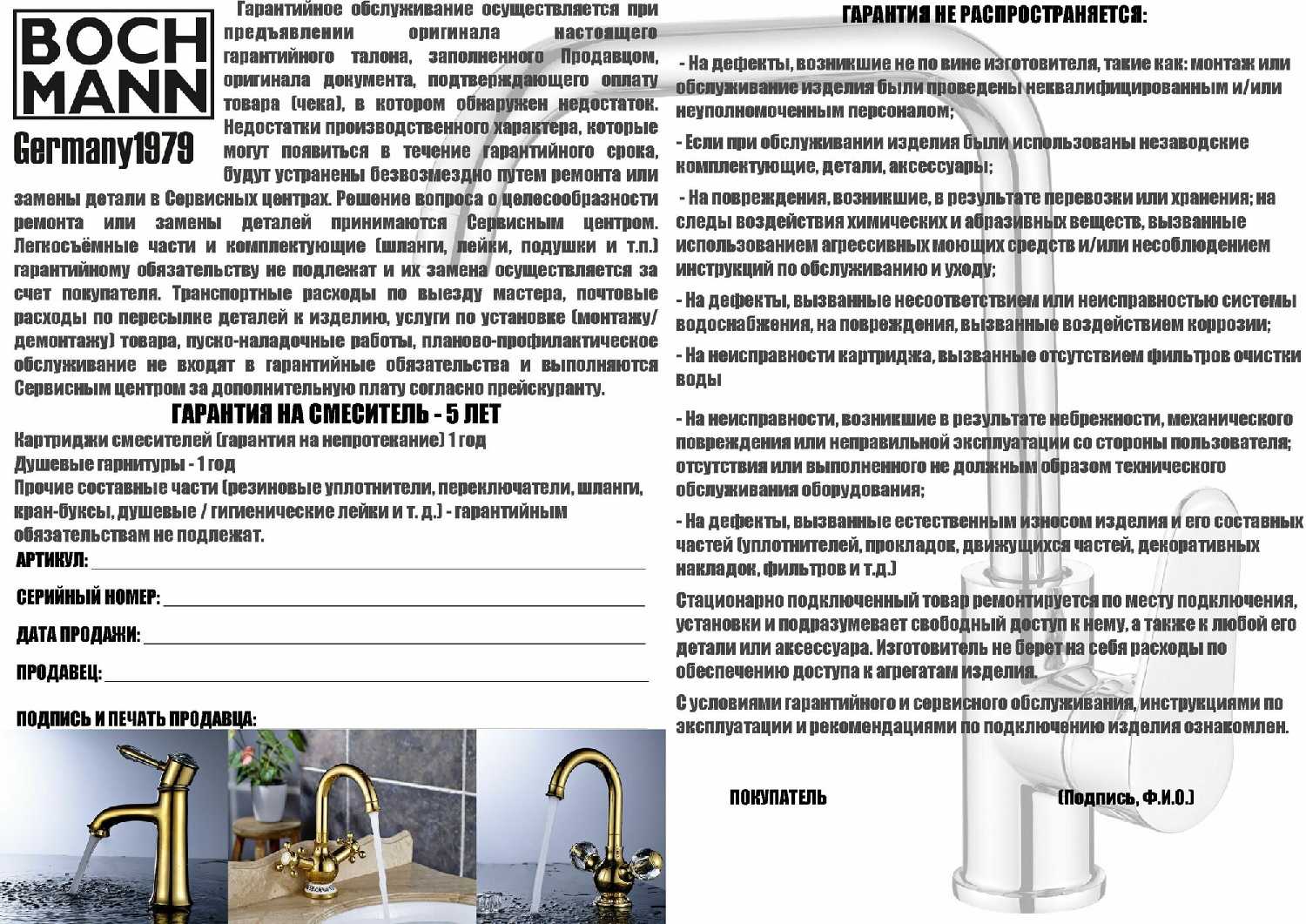 продавец отказывается по гарантии возвращать деньги. комедия уже неделю тянется в переписке по почте, где мне сначала предложили самой разобрать кран))) и собрать заново))) далее продавец начал говорить, что «причина поломки не известна», хотя в прошлом сообщении достаточно развернуто сказал мне где и как кран не правильно собран и какая у него неисправность. не хотят исполнять гарантийных обязательств. Все видео и фото доказательства были предоставлены, более того, я сохранила полную комплектацию товара и готова вернуть его продавцу. Продавец просто юлит и уходит от своих обязательств, вместо того, чтобы решить ситуацию