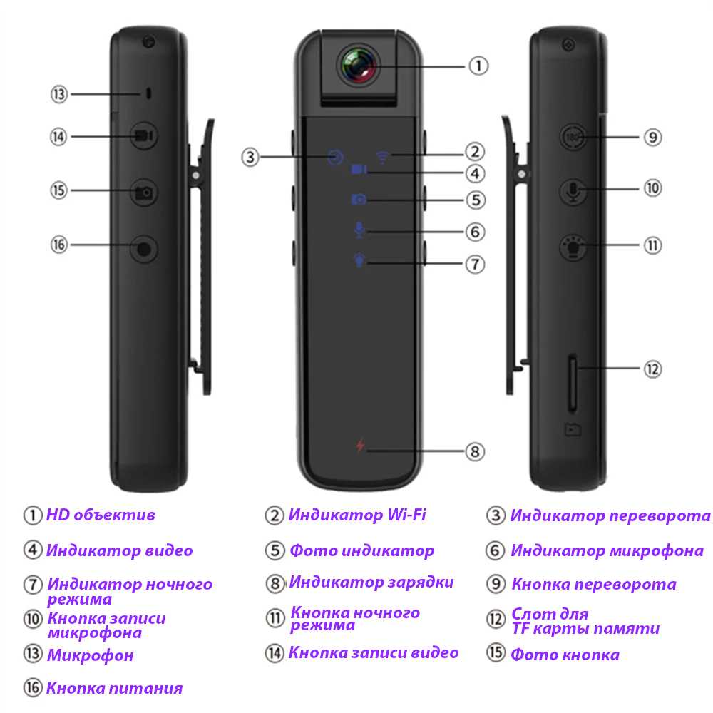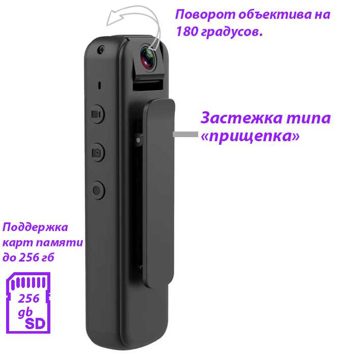 - + удобная, компактная, можно крепить на одежде, камера поворачивается, есть инструкция на русском, хоть и с ошибками, но разобраться можно