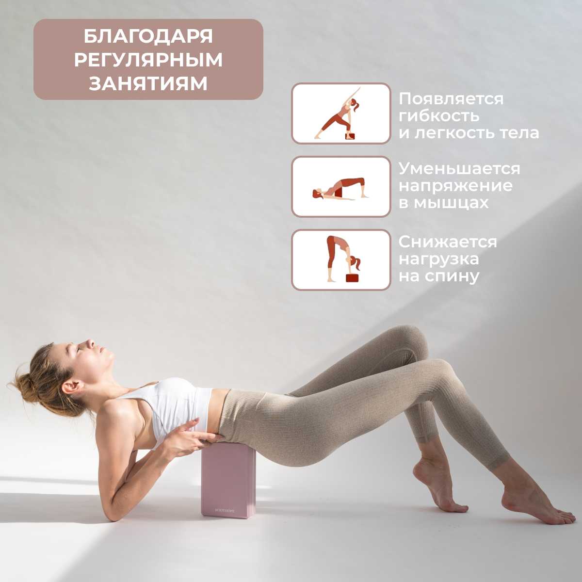 - + Очень мягкие и приятгые на ощупь блоки. Комфортные для занятий йогой и растяжкой
