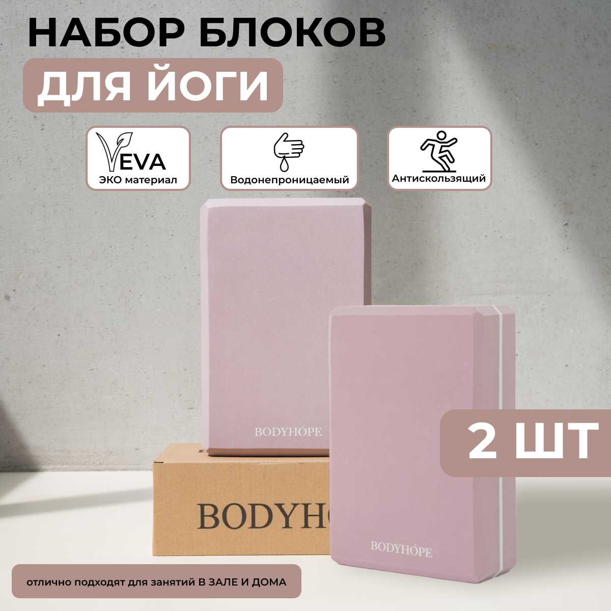 BODYHOPE Блок для йоги (15x7.5x23 см, набор 2?